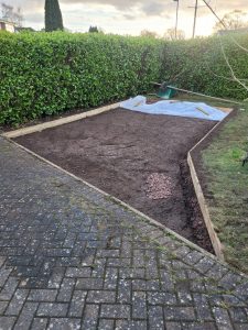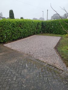 Extra Parking was required, so a bay was created using timber edge boards , type1 sub-base topped off with quantock 20mm chippings
