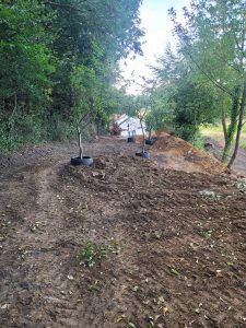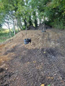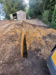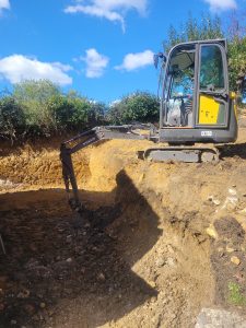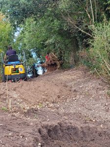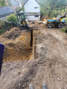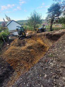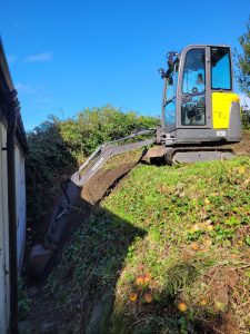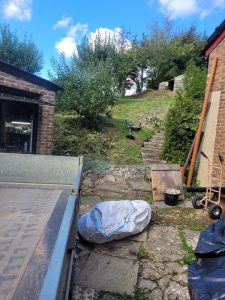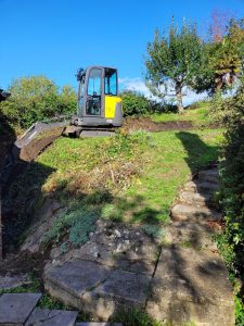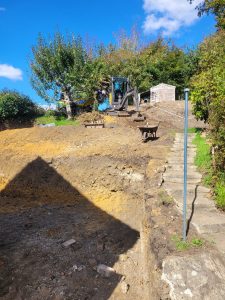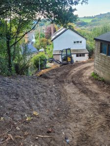 Well this was an interesting one! confronted with some steep gradients which needed digging out ready for a garage build and a seating area further up the garden, all the material , some 250tons was relocated at the top of the garden to level up the sloping gradient, all topsoil saved and spread back over and seeded down.