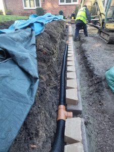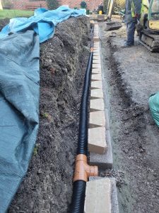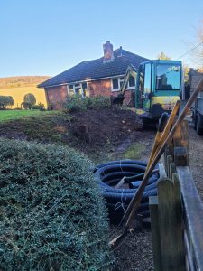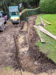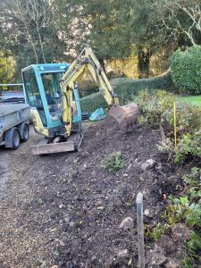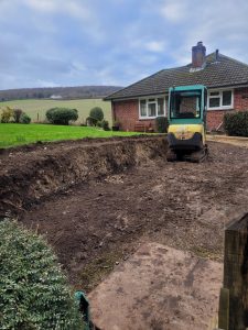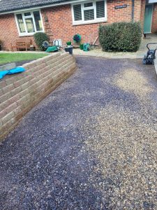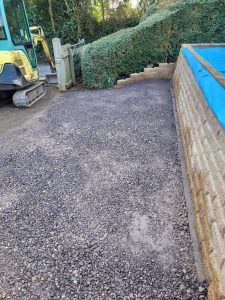 Extra Parking was required, so a bay was created using timber edge boards , type1 sub-base topped off with quantock 20mm chippings