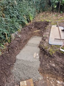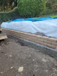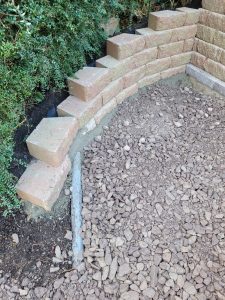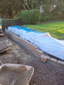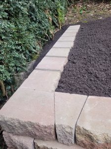 The existing lawn area was stripped back to soil due to poor growth under the tree line, a sleeper retainer wall was built to create a raised bed with the necessary lining to protect any timber, a small patio was laid with a contrasting sleeper edge, went back to this job to membrane and spread a Staffordshire pink stone replacing the grass area ( pics to follow)